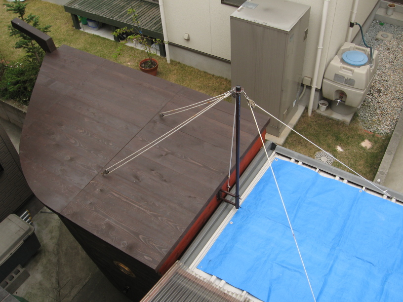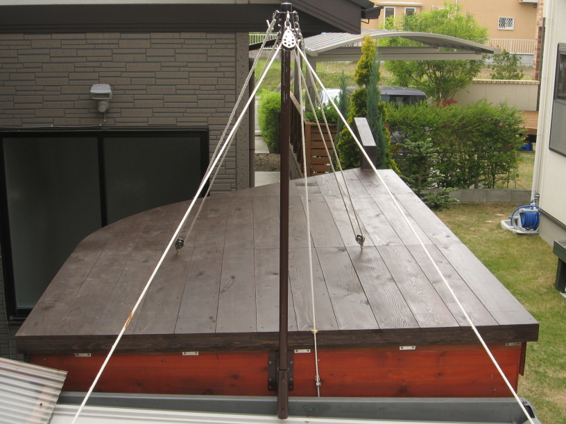 これが文字通りのウッドデッキ ( = wood deck) ( = 木製甲板)
