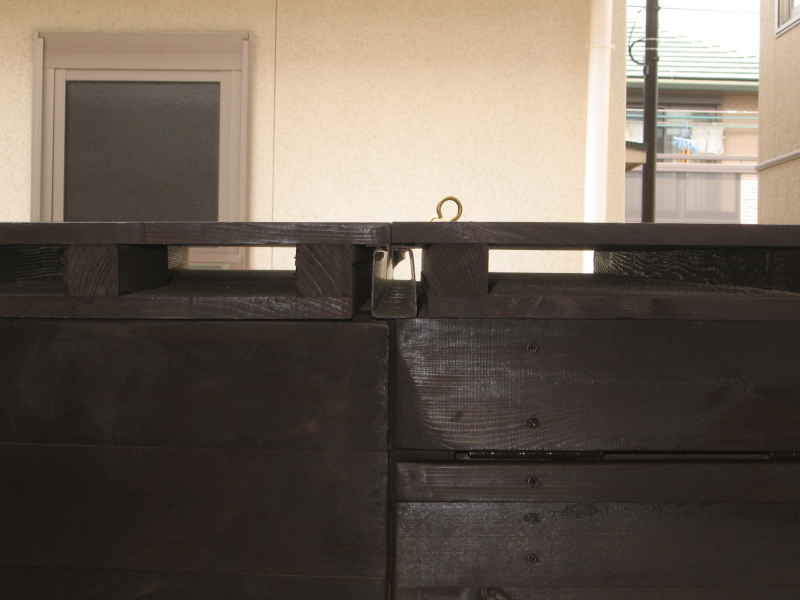 A木材の乾燥収縮によって開いてきた継手部分は,木工パテで充填。