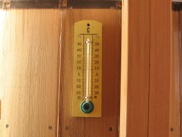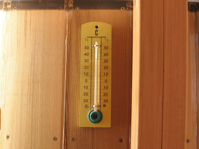 盛夏の2008年7月13日12時,船室内外の温度を測ってみました。