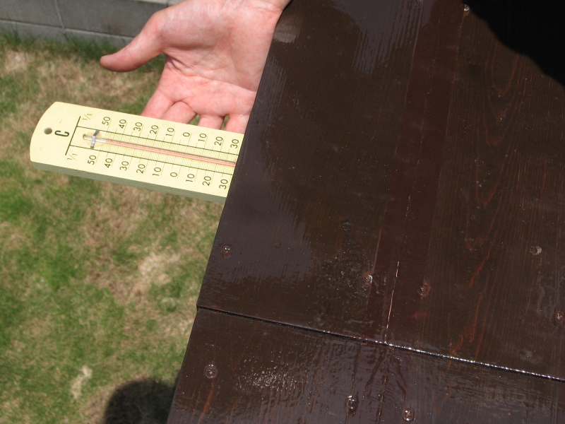 設計どおり断熱され,熱風が中空内部を抜けています。空気と木が良質の断熱材であることを再認識しました。