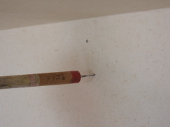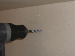 | まず,錐を刺し込んで中の様子を探り,電線類がないことを確認後, | ドリルで削孔し, | アンカーを差し込みます。 |