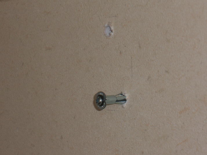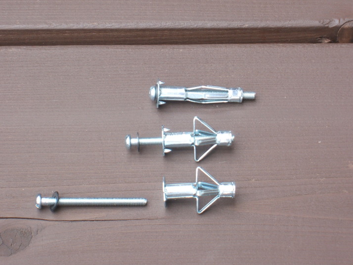 | ウォールアンカーの三態 | まず,時計回りにビスの頭を廻すと,アンカーの傘が徐々に開きます。 目いっぱい開くと,硬くなってもう廻せません。 |