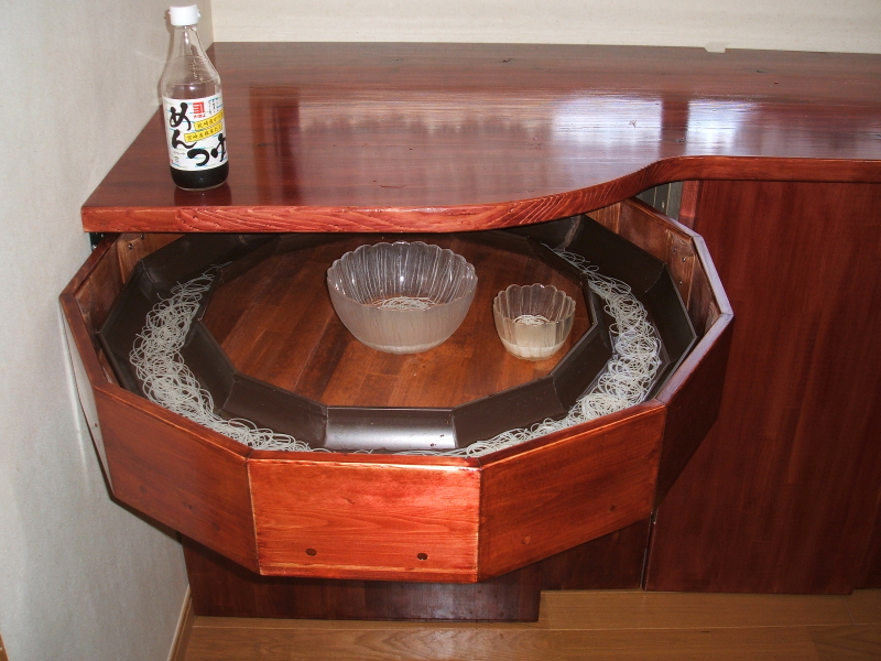 | 自作のオプション・トレイをセットすれば, | 「二人そうめん流し」の出来あがり! |