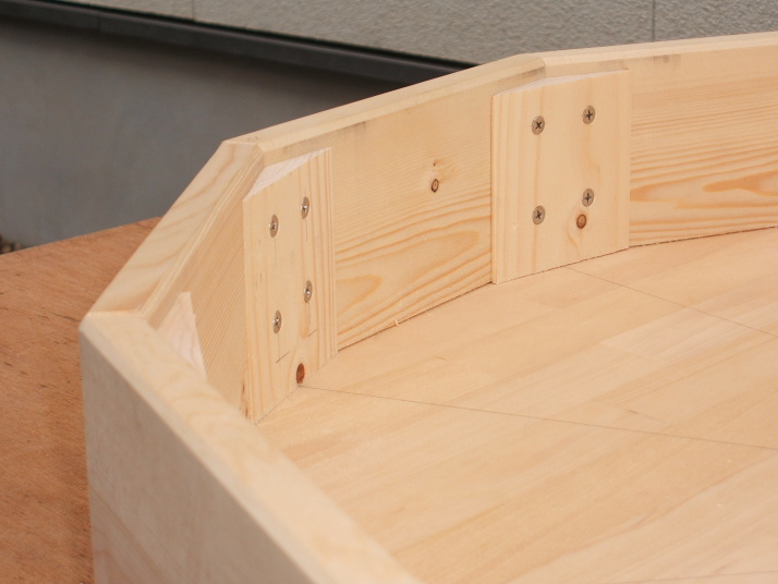 外縁板を確実にシンプルに接合する方法は無いものか?という思案のハテに辿りついたのが,「タガを内側から締める」という逆転の発想でした。