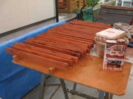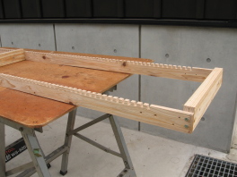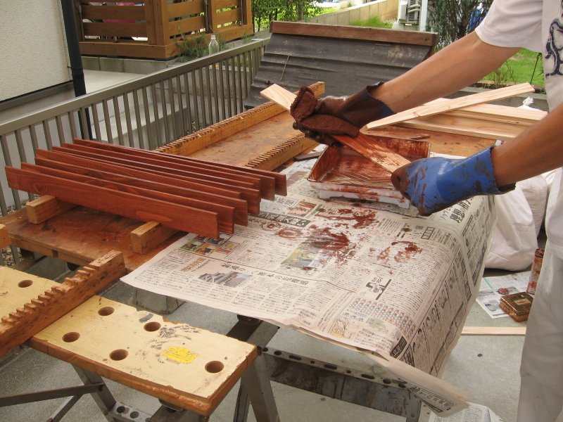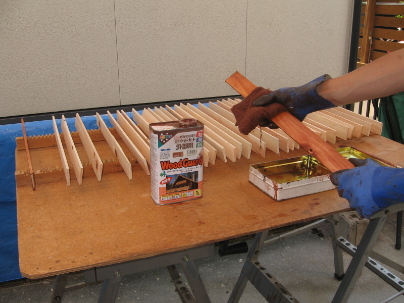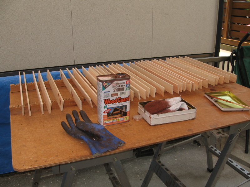 | 300枚を一度に塗って乾かすために, | こんな載せ台まで作りました。 | 2度塗るので,あれば便利です。 |