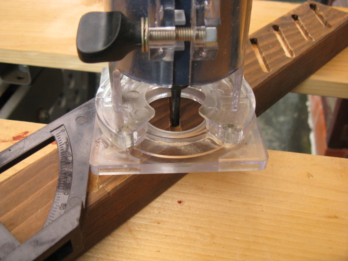 羽根を差し込む溝はトリマーを使って彫りました。トリマーのビット径は5.5mm。だから羽根の厚さも5.5mmに設定しました。