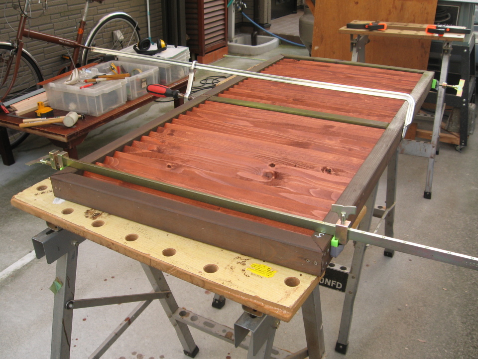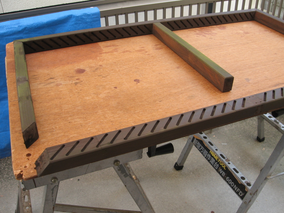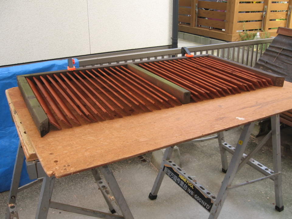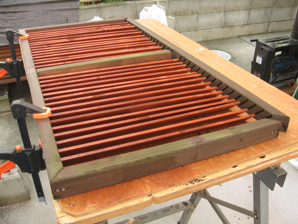 ルーバーは,釘や接着剤などは使わずに,木枠の側面に差し込んで留めています。