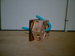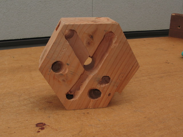 もっとも苦労したドラム部のからくりを,端材を使って説明すると次のようになります。