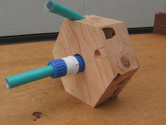 向い合った2枚の盤がターンテーブルのように回転しますが,軸が中空になっているので,そこをホースが貫通。