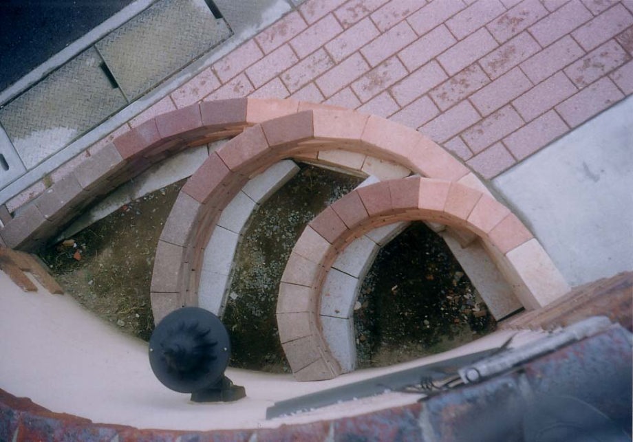 この作品ではモルタルを一切使わず,防水充填材のシリコンシーラントを「接着剤」として活用しました。(2004年7月)